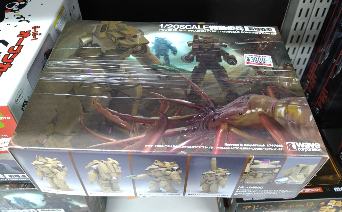En modellbyggsats från Wave, med en lång historia. Namnet på lådan är “rörligt infanteri” (機動歩兵), en översättning av Heinleins engelska “Mobile Infantry”. Rustningarnas konstruktion kommer från bilden som japanska Studio Nue gjorde till omslaget på 1977 års japanska utgåva av Starship Troopers (1959), kanske i mer direkt nedstigande led än den japanska filmatiseringen Starship Troopers (1988) som använde samma realistiska rymddräkter.