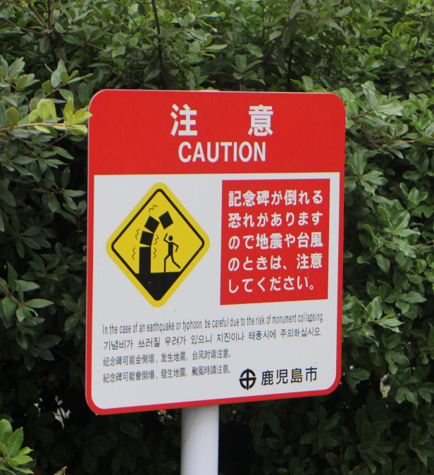 In the case of an earthquake or typhoon, be careful due to the risk of monument collapsing.