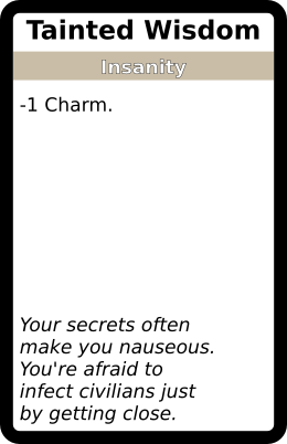 Tainted Wisdom 1 copy. In galleries: Insanity deck Horror Cards graphicsHorror Cards TRPG game design Creative Commons
