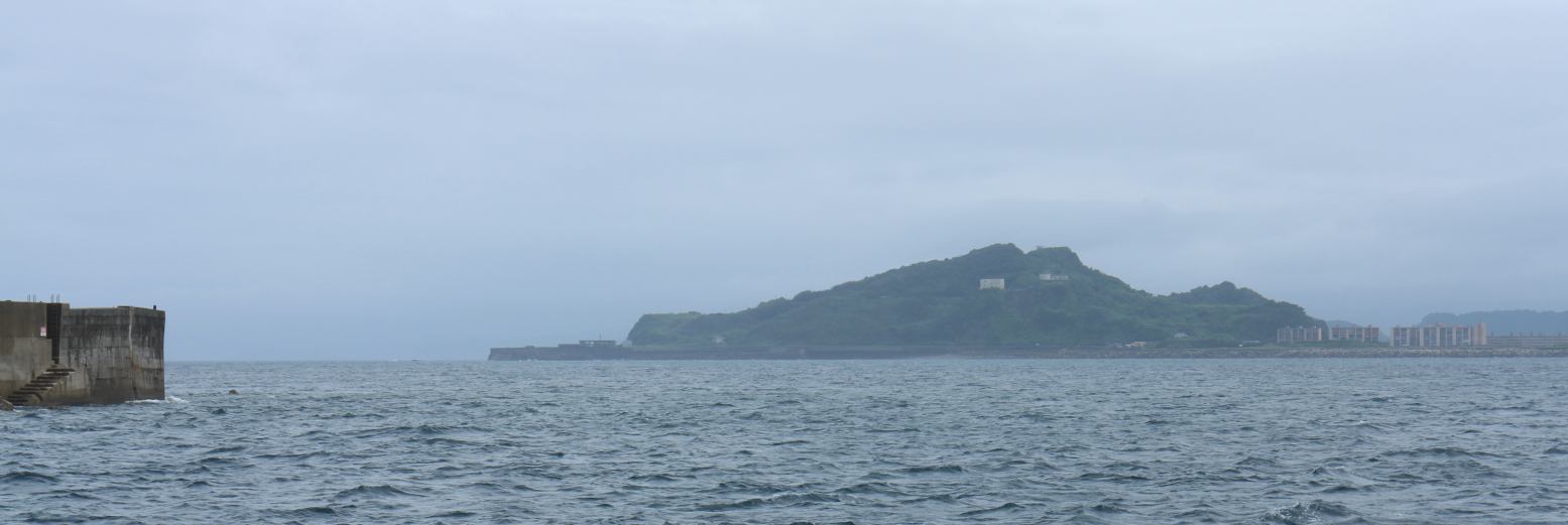 Hashima, till vänster i bild, ligger mycket nära Nagasaki. Den närmsta bebodda ön, Takashima, är såhär nära, till höger i bild. 2–3 mil norrut ligger Ikeshima, en betydligt större gruvö som var i drift till 2001 och som numera är nästan lika övergiven som Hashima.
