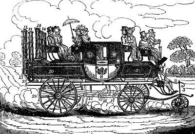 Gravyr av en av Goldsworthy Gurneys ångbilar från The Mirror of Literature, Amusement, and Instruction, 15 december 1827.