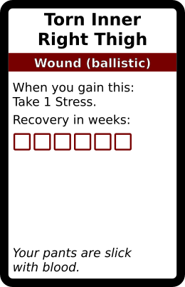 Torn Inner Right Thigh 1 copy. In galleries: Ballistic Wound deck Horror Cards graphicsCreative Commons game design TRPG Horror Cards